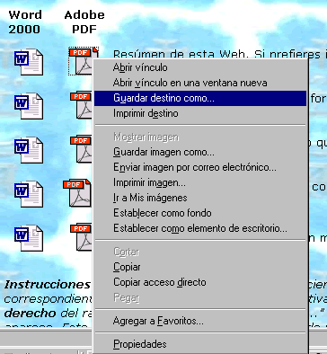 Instrucciones de descarga: Normalmente es suficiente con hacer click en el icono o imágen correspondiente. Eso abrira el documento en el programa Adobe.